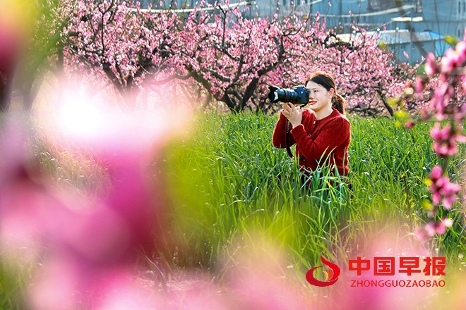 一摄影爱好者在河南省开封市尉氏县门楼任乡沙沃村千亩桃园采风。在河南省开封市尉氏县,眼下正是桃花、油菜花盛开时节,在充满生机与希望的大地上,多种花儿竞相怒放,构成了一幅幅美不胜收的春日画卷。