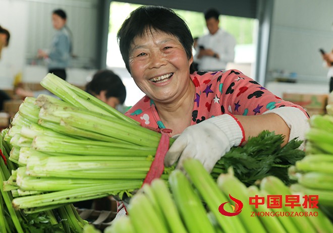 村民们穿梭于田垄间,麻利地挥动镰刀采收,刚割下的芹菜转眼被分拣、捆扎,整齐码放在自动传输带上。打包车间内将芹菜套上定制包装,贴上溯源二维码,随后装车发往京津冀地区的连锁商超。