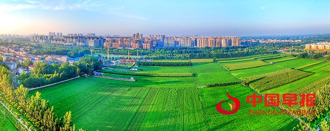中国早报 河南讯(特约记者 李新义)7月25日早上,尉氏县邢庄乡生机盎然的秋田与民居楼房相互映衬,村民在秋天里劳作,呈现出一幅和美乡村的丰收画卷。