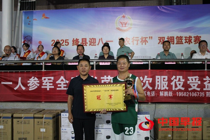 中国早报山西讯(特约记者 张广瑞) 7月29日晚,由山西省绛县退役军人事务局组织、绛县农业银行赞助的全县迎八一“农行杯”双拥篮球比赛圆满落幕,绛县退役军人事务局、绛县农业银行、绛县健康医院代表队分获冠、亚、季军。