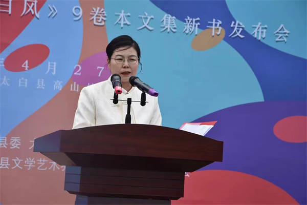 县作协副主席张江丽代表县作协汇报了《太白风》文集九卷本组织策划创作过程。她说这套文集也是太白老中青作家对太白的远去和未来格空喊话,是60后,70后,80后,90后与太白的情感对接,对故乡情地再认可。在不同文集的语言叙述中,有不同时代人的情怀和离舍,有不同时代人的坚守和风流,都化作了与当下的对接,化作人间苦难的取舍难离的疼痛,追求生活的富裕和人生的完美。