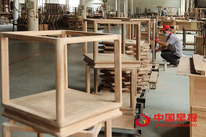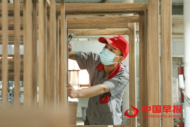 中国早报 河南讯(记者 赵玉虎 通讯员 李新义)2024年9月7日,河南省开封市尉氏县先进制造业开发区尚王村的村民在本村村口的红创家具厂赶制订单。